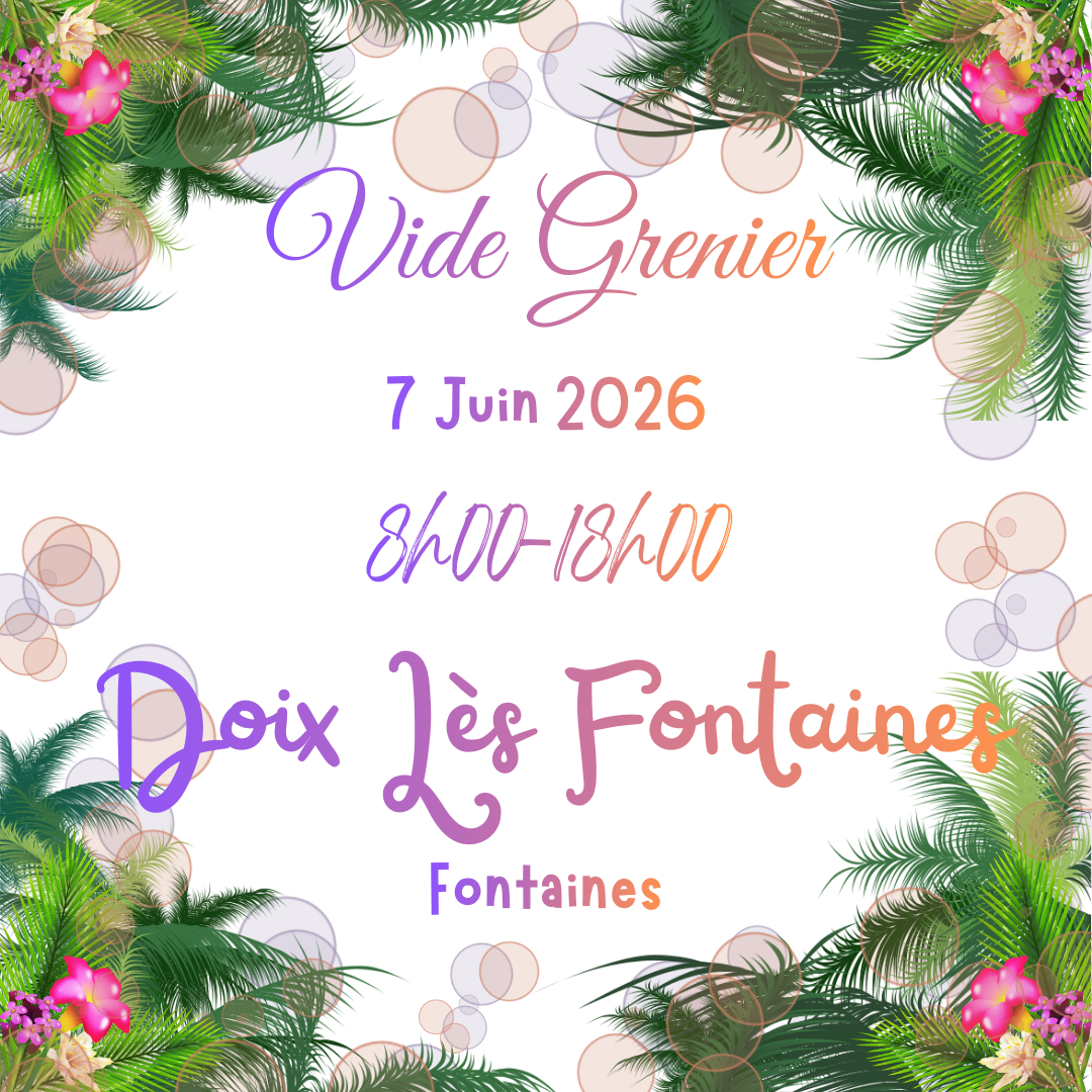 Vide Grenier Vide Grenier par Energies Spirituelles 85 78 78 people viewed this event. S’inscrire à l’évènement To register for this event email your details to Energiespirituelles85@protonmail.com Inscrivez-vous via le webmail : Gmail / AOL / Yahoo / Outlook Date et heure 07-06-2026 - 08:00 à 07-06-2026 - 18:00 Lieu Doix lès Fontaines Types d’évènements Manifestations Catégorie de l’évènement Vide grenier Partager avec des amis Facebook Twitter Linkedin Xing Pinterest Si vous aimez, partagez !