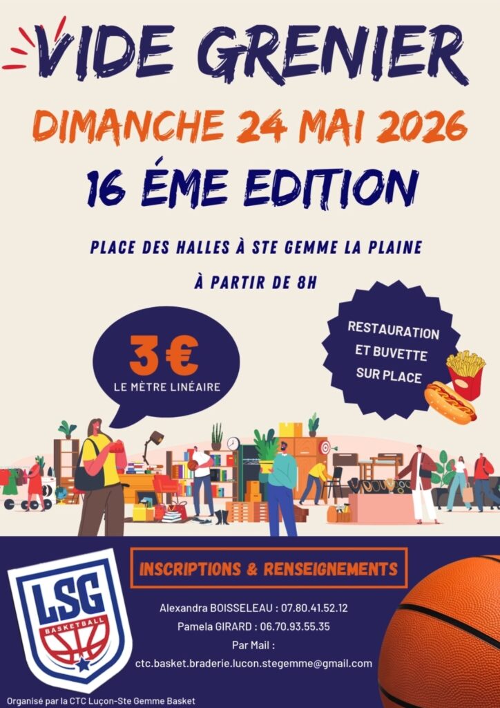 Vide grenier Vide grenier par Energies Spirituelles 85 34 34 people viewed this event. S’inscrire à l’évènement Date et heure 24-05-2026 - 08:00 à 24-05-2026 - 18:00 Lieu Sainte Gemme la Plaine Types d’évènements Manifestations Catégorie de l’évènement Vide grenier Partager avec des amis Facebook Twitter Linkedin Xing Pinterest Si vous aimez, partagez !