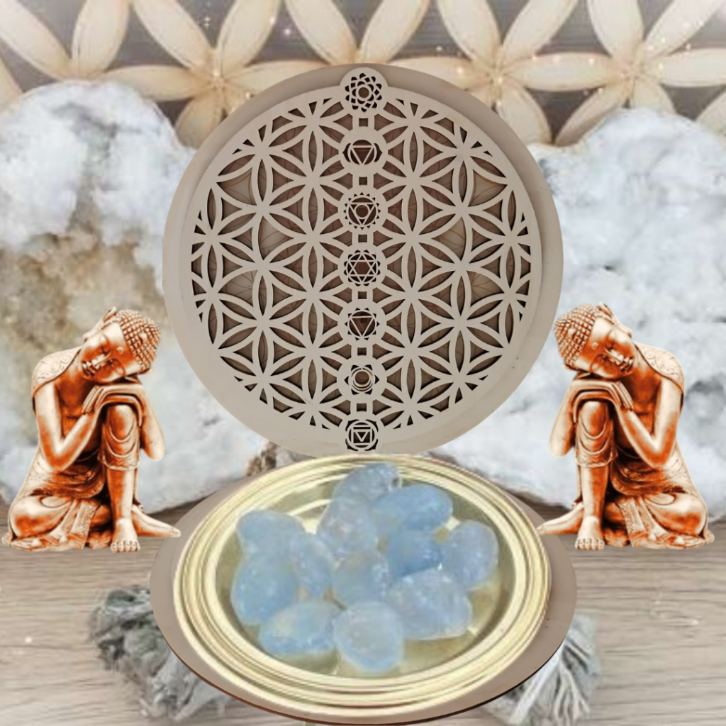 Elle est portée pour aiguillonner l’éloquence, pour instiller le développement spirituel et pousser vers l’illumination. Posée sur le chakra du 3eme œil, c’est une pierre dotée d’une vibration élevée imprégnée d’énergies divines qui enseigne la confiance dans la sagesse infinie du divin, apportant ainsi une harmonie total.