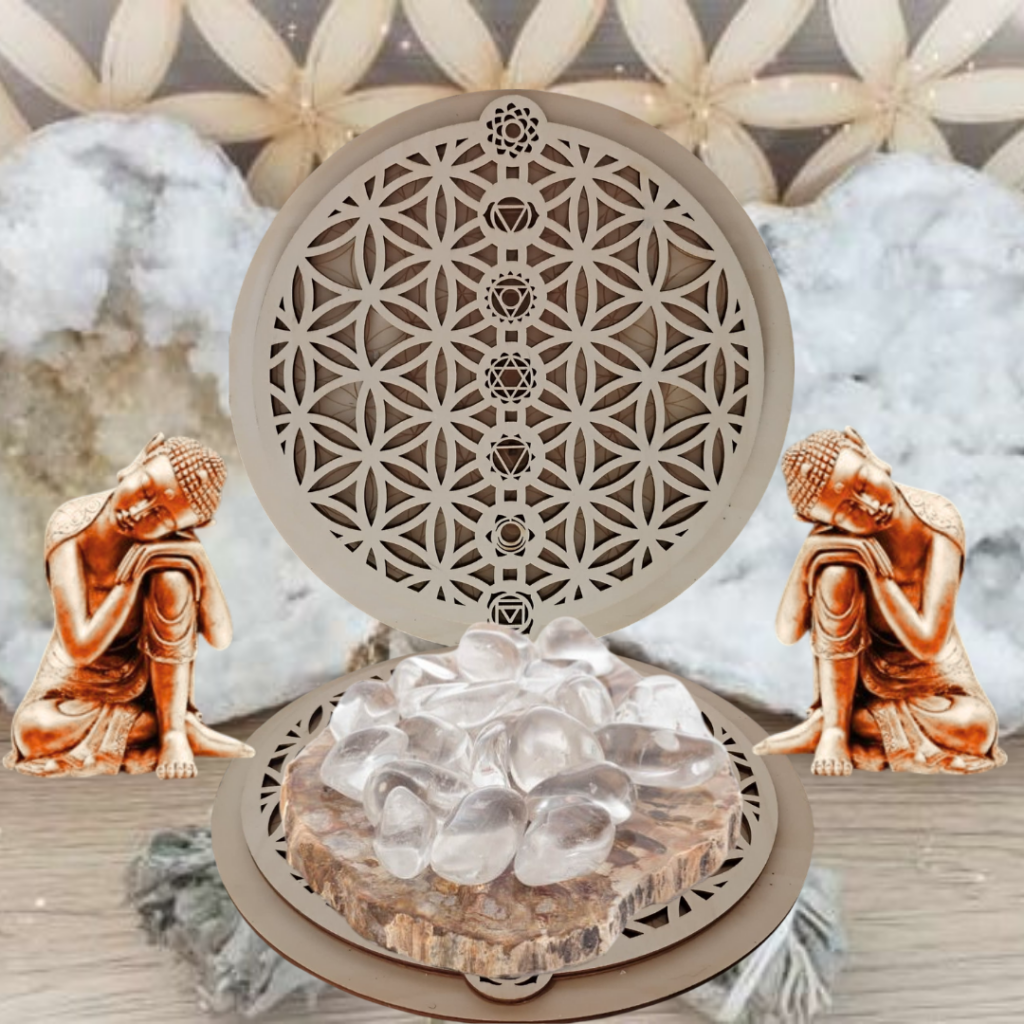 Afin de représenter la Déesse, le Dieu ou le Divin en général, deux cristaux de roche sont disposés sur l’autel : ce n’est donc pas un hasard si les baguettes magiques qui en sont ornées sont très populaires, ni si les puissantes « baguettes foudres » renferment de la poudre de cristal de roche.